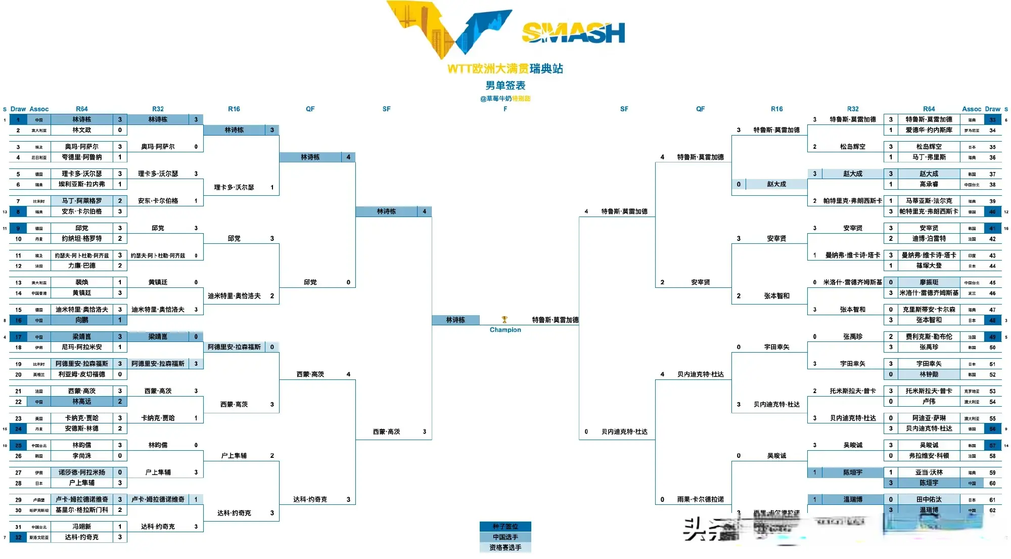 欧洲大满贯作为WTT最高级别赛事吸引了众多高水平运动员参赛,冠军可获得2000积分。结束本站比赛,世界排名也发生了非常大的变化。