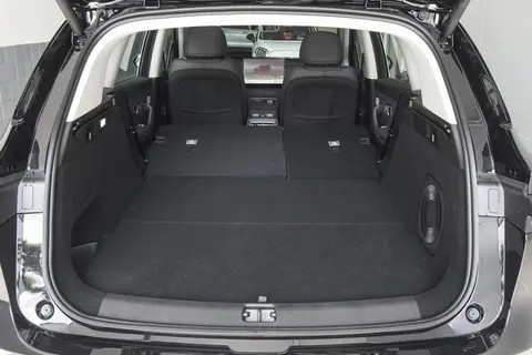 车内的储物空间布置得也是相当周到。全车拥有多达 26 处储物空间,无论是门板上的储物格、扶手箱,还是中控台下方的空间,都能很方便地存放各类物品。车内还设有 5 个专属杯托,让每位乘员都能方便地放置水杯。后备箱的标准容积为 370L,可同时容纳 7 个 20 英寸登机箱,足以满足日常出行和购物的载物需求。当后排座椅放倒后,后备箱容积可扩展至 835L,即便是装载大件物品,如婴儿车、露营装备等,也毫无压力。此外,后备箱下方还有一个下层储物空间,可以用来存放一些不常用的物品,着储物空间真是便利。